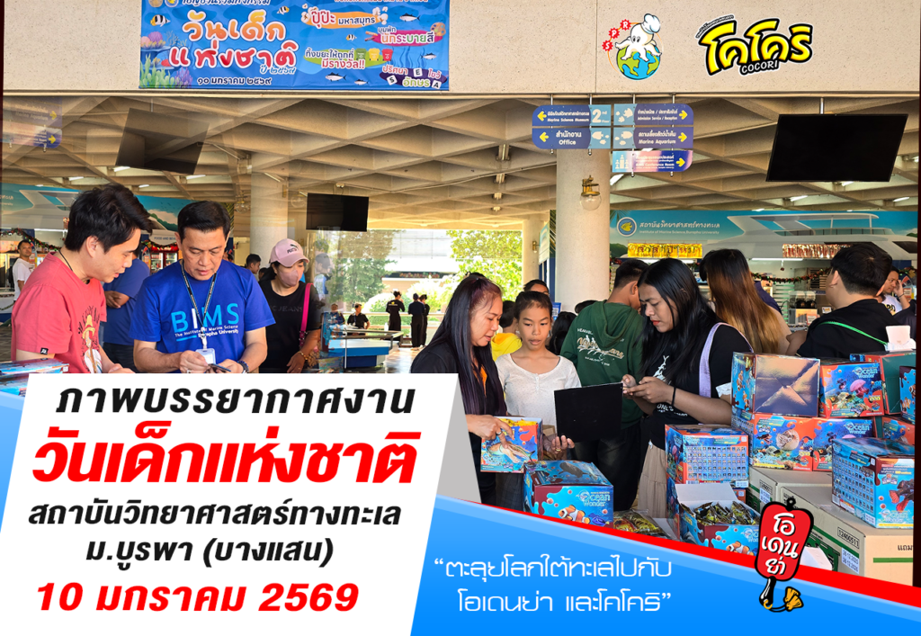 - ภาพบรรยากาศกิจกรรม วันเด็กแห่งชาติ ประจำปี 2569ภาพบรรยากาศกิจกรรม วันเด็กแห่งชาติ ประจำปี 2569 ณ สถาบันวิทยาศาสตร์ทางทะเล มหาวิทยาลัยบูรพา (ศูนย์เรียนรู้โลกใต้ทะเล บางแสน) เมื่อวันเสาร์ที่ 10 มกราคม 2569 ที่ผ่านมา